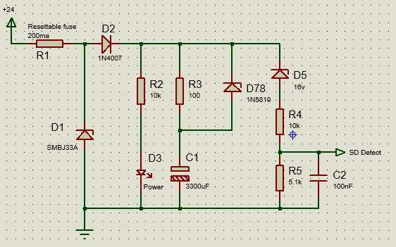 This circuit triggers the Shutdown Detect pin to low when the 24V supply drops to approximately 19V. The C1 capacitor ensures the chip remains powered for a short duration. Since erasing and re-writing to Flash during this critical window is risky, the following protocol must be implemented: