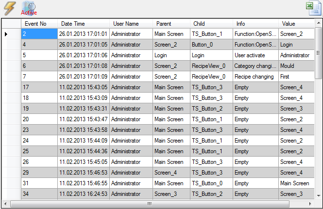 13. Column names of the Recipie and Alarm objects now can be modified.