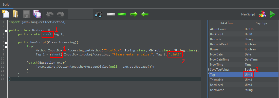 Bu scripti oluşturduğunuz bir buton yardımıyla çalıştırdığınızda ekranınıza InputBox gelecektir. Bu sayede ekran klavyesi ile değer girebileceksiniz. Buraya girdiğiniz değeri Tag_1 etiketine aktaracaktır.