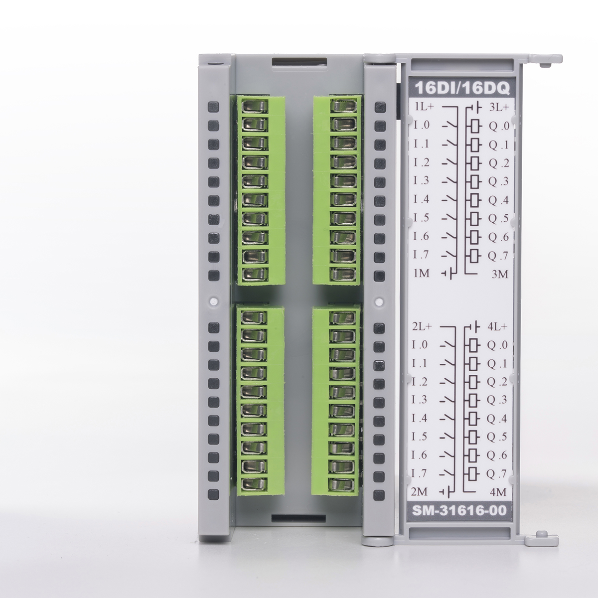 16 Kanal optik izoleli dijital giriş ve 16 kanal optik izoleli dijital çıkış modülü. Besleme gerilimi 20-28 V. DC. Dijital çıkış akımı 0.5 Amp. Maksimum giriş frekansı 50 Khz, çıkış frekansı 40 Khz.