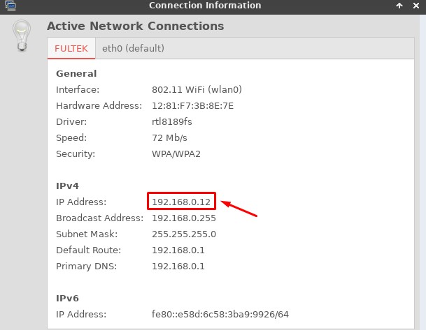 Panelimizin Wi-Fi IP adresini görebiliriz.