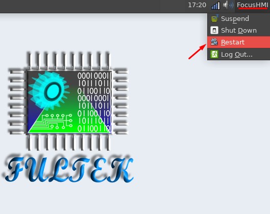 Bu işlemden sonra araç sekmesinin sağ üst kısmındaki FocusHMI yazısına tıklayıp, panelimizi restart ediyoruz.